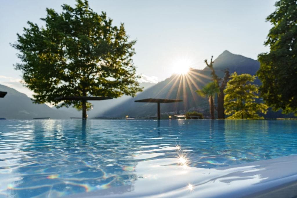 Ja. Es gibt einen Außen‑ und einen Innenpool mit großzügigen Liegeflächen in herrlicher Panoramalage sowie einen Wellnessbereich mit Badewelt, Sauna und Beauty & Massagen.